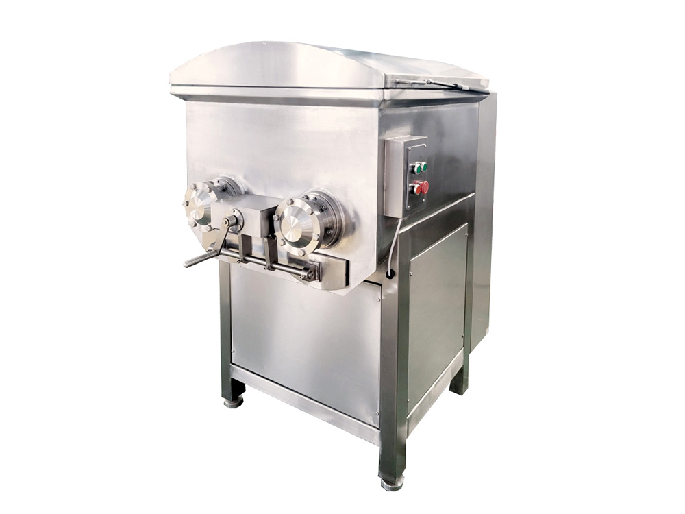 →雙軸雙速拌餡機(jī)  →型號(hào) 150/350/600/1200升  →功能  適合各種餃子、包子等肉類及蔬菜類餡料的攪拌  →特色  1、采用平行雙軸結(jié)構(gòu),螺旋板式槳葉,物料在料斗中翻動(dòng)的同時(shí)作圓周運(yùn)動(dòng),同時(shí)完成軸向回流,使各種物料攪拌的更加均勻?! ?、采用雙速雙動(dòng)力,根據(jù)所拌餡的種類及工藝選擇不同的轉(zhuǎn)速和不同的運(yùn)轉(zhuǎn)方式進(jìn)行攪拌?! ?、上蓋后端設(shè)有行程開關(guān),根據(jù)上蓋的開合,自動(dòng)切斷或接通電源,操作方便,安全可靠?! ?、整機(jī)采用不銹鋼制造,易于清洗,美觀大方。符合國(guó)家衛(wèi)生標(biāo)準(zhǔn)?! ?、可根據(jù)客戶的需求定制自動(dòng)進(jìn)水,自動(dòng)起蓋,自動(dòng)排料等功能?!  饕夹g(shù)參數(shù)產(chǎn)品型號(hào)面斗容積(L)額定功率(kw)攪拌轉(zhuǎn)速(rpm)額定電壓(v)外形尺寸(長(zhǎng)×寬×高)SZJ   150升1501.5/2.442/84380920×665×990SZJ   350升3502.2/3.342/843801180×880×1390SZJ   600升6003.0/4.542/843801430×1080×1590SZJ  1200升12005.0/7.542/843801600×1530×2750